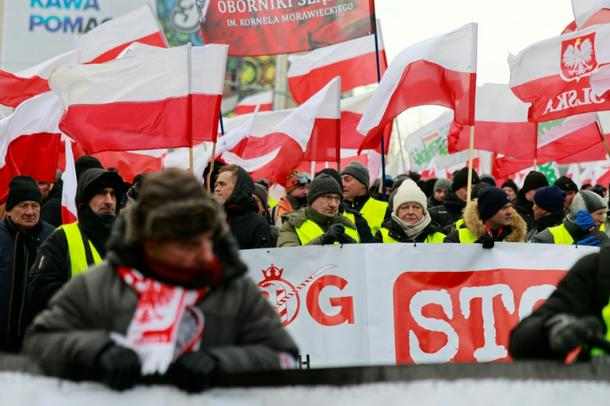 Polish farmers and their supporters also protested