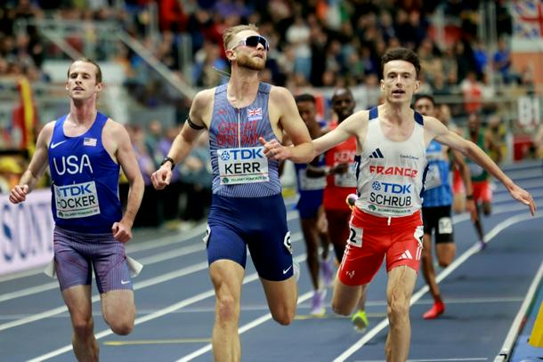 Hocker kicked down the home stretch to nip in front of the Frenchman, but he had left himself too much to do and Kerr streaked through with gritted teeth for a second world indoor title.