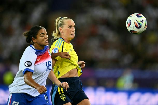 England defender Jess Carter (left) in action against Sweden at the Women's Euros