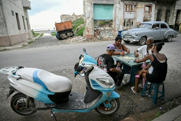 Cubans play dominoes on a street in Havana