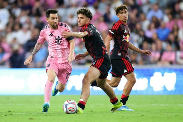 Lionel Messi battle's New York's teenage midfielder Adri Mehmeti during Inter Miami's 2-2 draw