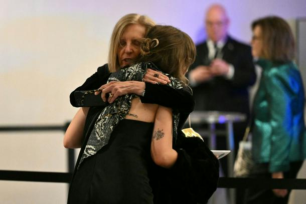 Attendees embrace as they leave the White House Correspondents' dinner